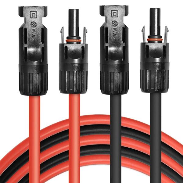 The extension cable with Solar Connectors runs between the solar panel and charge controller or between two solar panels, allowing for greater space between both items. The wiring is weatherproof and designed to withstand extreme heat and cold. Different brands of solar panel connectors may have different polarities. Our products-m c 4 cable, red wire (male connector) = positive electrode, black wire (female connector) = negative polarity. Before final connection, make sure the polarity is correct, otherwise the polarity may be reversed.